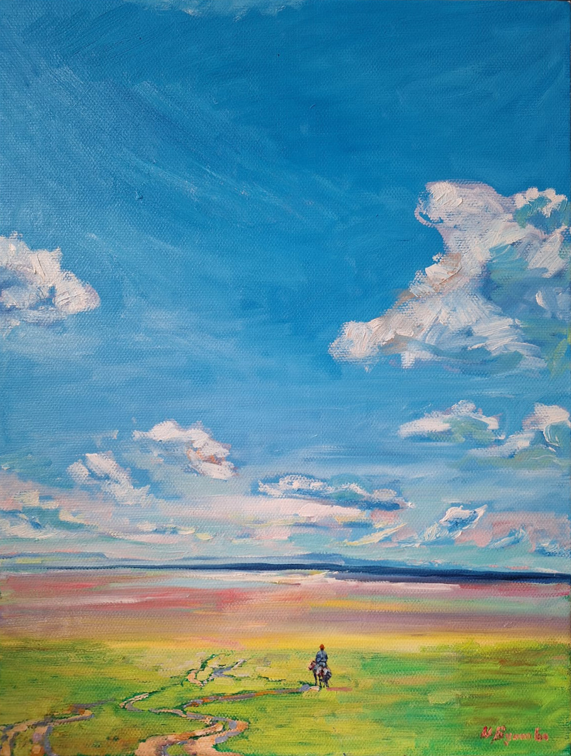 Far Ride 61x80cm, oil on linen 2021. In the collection of the Mongolian Embassy in Singapore